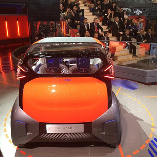 Sur ces photos, on peut observer beaucoup de monde autour d'Ami One qui attire la curiosité des visiteurs avec son look unique. Sorte de véhicule non identifié, le concept Ami One interprète la future mobilité urbaine vue par Citroën. Strict deux places, il est mu par un moteur électrique et dispose d'une autonomie de 100 kilomètres permettant de limiter son poids et son prix.