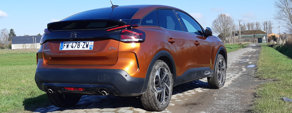 Surprenante cette C4 car, pour tout dire, elle s’avère même plus dynamique et moins confortable qu’attendu. En effet, moi qui avait été bluffé par la version électrique, je suis très légèrement déçu par le confort de cette C4. Non pas que celui-ci soit mauvais, loin de là, mais je m’attendais à encore mieux et je pense que ce sont les grandes roues de 18 pouces qui gâchent la fête. Entendons nous bien, le confort est excellent, la C4 se révélant par exemple plus confortable que certaines berlines du segment supérieur. Néanmoins, je pense que Citroën a cherché à donner davantage de dynamisme à cette C4 puisqu’elle se montre nettement moins souple qu’un C4 Cactus mais nettement plus dynamique. Le confort s’avère même surprenant puisque, si l’on ressent bien les petites saignées de la route, surtout en provenance des roues arrières, les dos d’âne ou les trous et bosses sont, elles, relativement effacées.