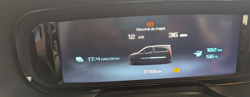 Si les performances sont loin d’être sportives, ce n’est de toutes façons pas l’objectif, le Berlingo électrique s’insère sans difficulté aucune sur les différents types de parcours et permet de rouler aux vitesses réglementaires avec une facilité déconcertante. Mais, surtout, c’est la consommation du Berlingo qui interpelle : pour être honnête, j’avais vu un essai juste avant de prendre la voiture qui était pour le moins difficile avec le ë-Berlingo. J’étais donc pas très rassuré à l’idée de faire les 258 kilomètres d’autoroute qui m'attendaient pour rentrer à mon domicile…et qu’elle ne fut pas ma surprise lorsque j’ai vu la consommation moyenne établie à 16 kWh alors même que j’avais parcouru 60 kilomètres sur nationale à 90-110. 16 kWh, c’est une vraie belle performance pour un véhicule qui est le contraire de la goutte d’eau et une performance similaire à celle d’une C4, c’est dire combien la surprise fut de taille. Elle le fut d’autant plus que le Berlingo a continué à proposer une consommation de 16 kWh sur les 200 derniers kilomètres, en restant à une vitesse de 110 km/h certes, permettant ainsi de proposer encore 20% de batterie après plus de 270 kilomètres parcourus, les derniers en ville. Ces performances, fort étonnantes, se sont poursuivies sur tous les types de roulage effectués pendant les 15 jours d’essai avec des consommations descendant jusqu’à 12 kWh, les conditions météorologiques adéquates ont pu aider mais, assurément, le Citroën ë-Berlingo s’est révélé épatant tout au long de cet essai. Pour vous prouver ma bonne foi, je vous mets dans la galerie ci-dessous, des photos de la consommation affichée sur l’ordinateur de bord dans différents trajets, j’en suis encore tout étonné.