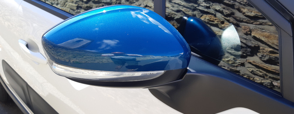 Sur le plan du style, la C3 a particulièrement bien vieillie et n’avait en aucun cas besoin d’un vaste changement. L’adoption d’un nouveau bouclier avant de de phares redessinés transforment sa face avant pour lui donner davantage de caractère et de personnalité en la faisant coller au nouveau style de la marque étrenné par le concept CXpérience et qui se généralisera sur la gamme. Cette nouvelle face avant est plutôt réussie et gomme l’effet globuleux des anciens projecteurs pour lui préférer des phares mieux intégrés à la calandre, l’ensemble devient plus homogène. Au delà d’un nouveau dessin, les projecteurs adoptent la technologie full led grâce à trois modules sous un fond noir qui reprennent le style du concept CXpérience. De nouveaux airbumps apparaissent remplaçant les cinq carrés par trois gélules avec une ponctuelle colorée plus grande qui fait le tour de la gélule et qui vient apporter du peps sur le profil de la C3. Ces changements sont complétés par un nouveau dessin du raccord de peinture sur la vitre de custode qui reprend, lui aussi, une forme de gélule. Léger restylage pour la C3 qui s’avère pourtant efficace puisqu’il vient donner davantage de peps et de dynamisme à la C3, davantage de personnalité aussi notamment grâce aux nouvelles possibilités de personnalisation. Sur cette version Feel pack, la C3 était dotée d’une carrosserie blanche contrastée par un toit bleu émeraude et des ponctuelles colorées de même couleur. L’ensemble se révèle classieux et très élégant, le bleu émeraude est vraiment très agréable offrant des nuances plus claires ou sombres selon la luminosité. C’est l’arrière qui n’a subit aucune modification qui se voit ici affaibli. Son côté rondouillard avec ses deux feux globuleux fait un peu mou contrairement à la nouvelle face avant plus dynamique, l’ensemble perd un peu de cohérence, les feux auraient peut être mérités de voir leur design intérieur modifié pour les rendre plus dynamique eux aussi. Toutefois, la C3 apparaît joviale et pimpante dans cette configuration avec davantage de caractère mais s’avère toujours pimpante et joviale.